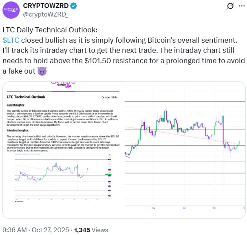Что ж, что ж, что ж! Похоже, Litecoin (LTC) устраивает небольшую вечеринку, и цена получает приглашение 🎉. По состоянию на 27 октября 2025 года, Litecoin вырос примерно на 3.5% за последние 24 часа. Именно так, он добавляет ‘lite’ в ‘litecoin’, но с щепоткой ‘тяжелого’ импульса. И не обманывайтесь этим спокойным настроением; рынок разогревается, как уютный камин в холодный день (без сажи). 🔥
